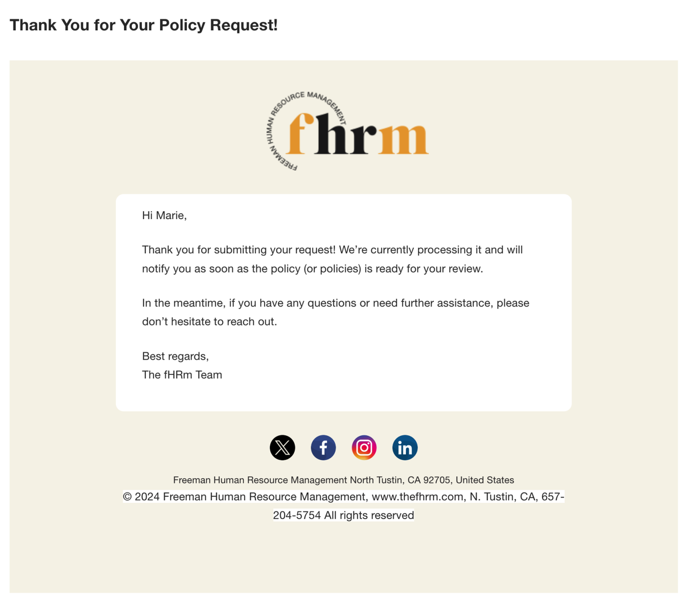 This SOP outlines the steps for requesting a policy through the We Need a Policy feature on the fHRm portal.