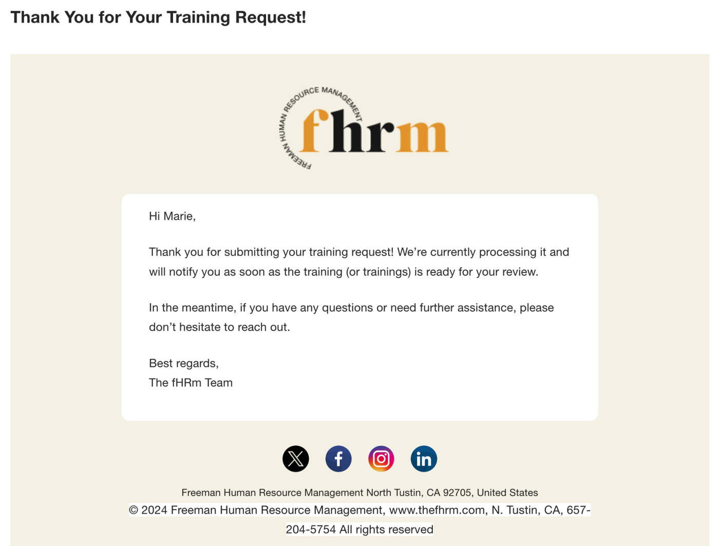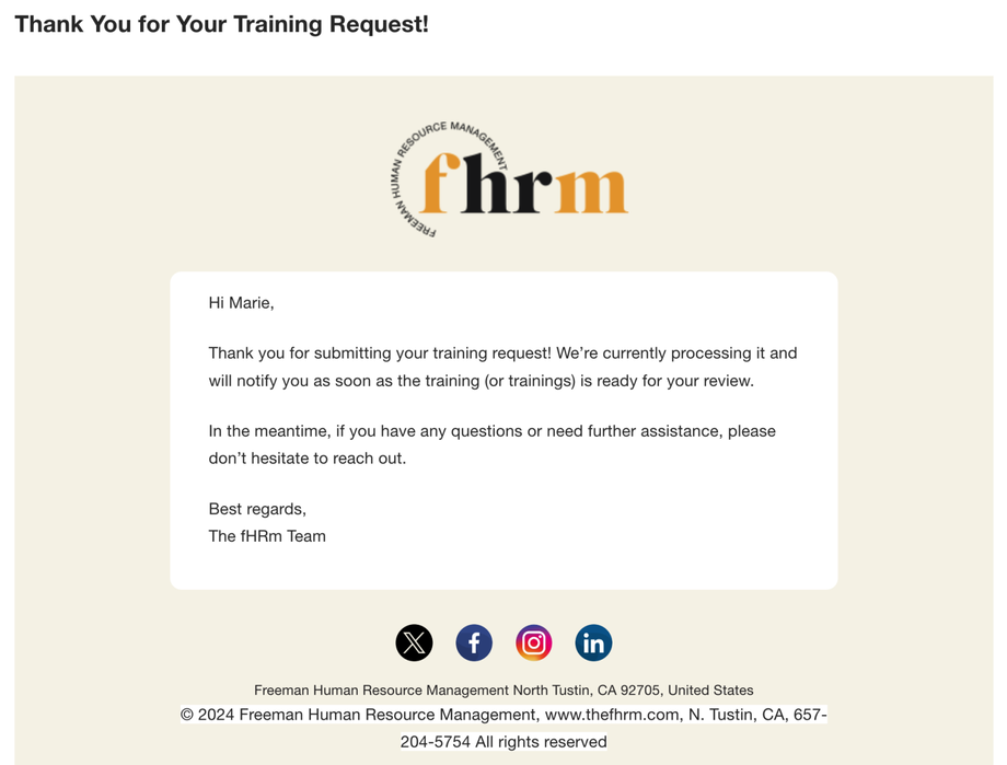 You will receive an email confirmation once the training session is scheduled.